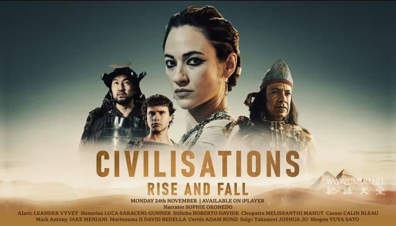 又名:文明兴衰录;《文明:兴起与衰落》(Civilisations: Rise and Fall)是BBC Studios制作的四集纪录片系列。影片由索菲·奥康内多(Sophie Okonedo)担任旁白,透过珍贵文物与历史重建,讲述四大文明的辉煌与衰落:古罗马、古埃及、日本武士时代以及阿兹特克帝国。每一集聚焦一个文明的关键时刻。例如,埃及篇展现托勒密王朝的血腥权力斗争,克娄巴特拉与兄弟之间的内战...