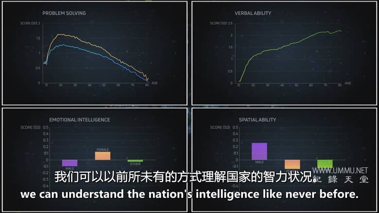 纪录片通过不同年龄、性别及生活方式群体的数据对比,探讨现代科技使用习惯(如智能手机与电子游戏)对人类认知能力的影响,并揭示智力在生命周期中的变化规律,例如某些能力在童年达到峰值,而另一些则可能在老年期仍持续发展。节目还结合最新脑科学研究,分析哪些生活方式可能提升或削弱我们的思维能力。