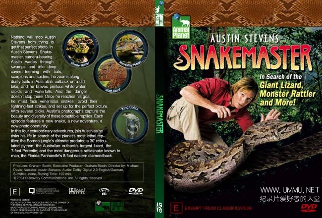 奥斯汀史蒂文 (Austin Stevens) 即使冒着可能为自己敲丧钟的危险,但要是见着了世界上毒液最强的爬虫类时,还是会忍不住要一亲芳泽。 生于南非的奥斯汀·史蒂文斯,打从12岁起,就完全着迷于身子骨滑溜溜的蛇类。他热衷饲养各式各样的爬虫类宠物,其中不乏世界上最珍奇且毒性致命的品种,因此等到奥斯汀的学校生涯结束时,他的私人收集已被视为南非的国宝之一。 奥斯卡汀·史蒂文斯,是世界公认的“蛇王”,...