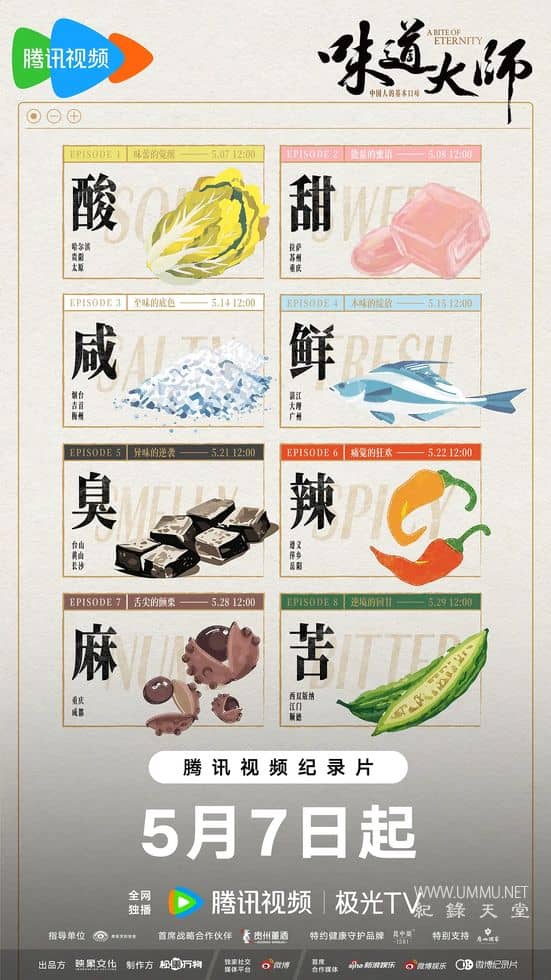 首创聚焦于中国味道文化叙事中关于中国人的「味感表达」,遍寻山川湖海,通过24组人物故事,进行“酸甜苦辣咸鲜臭麻”八大口味美⻝的探索。 收藏1